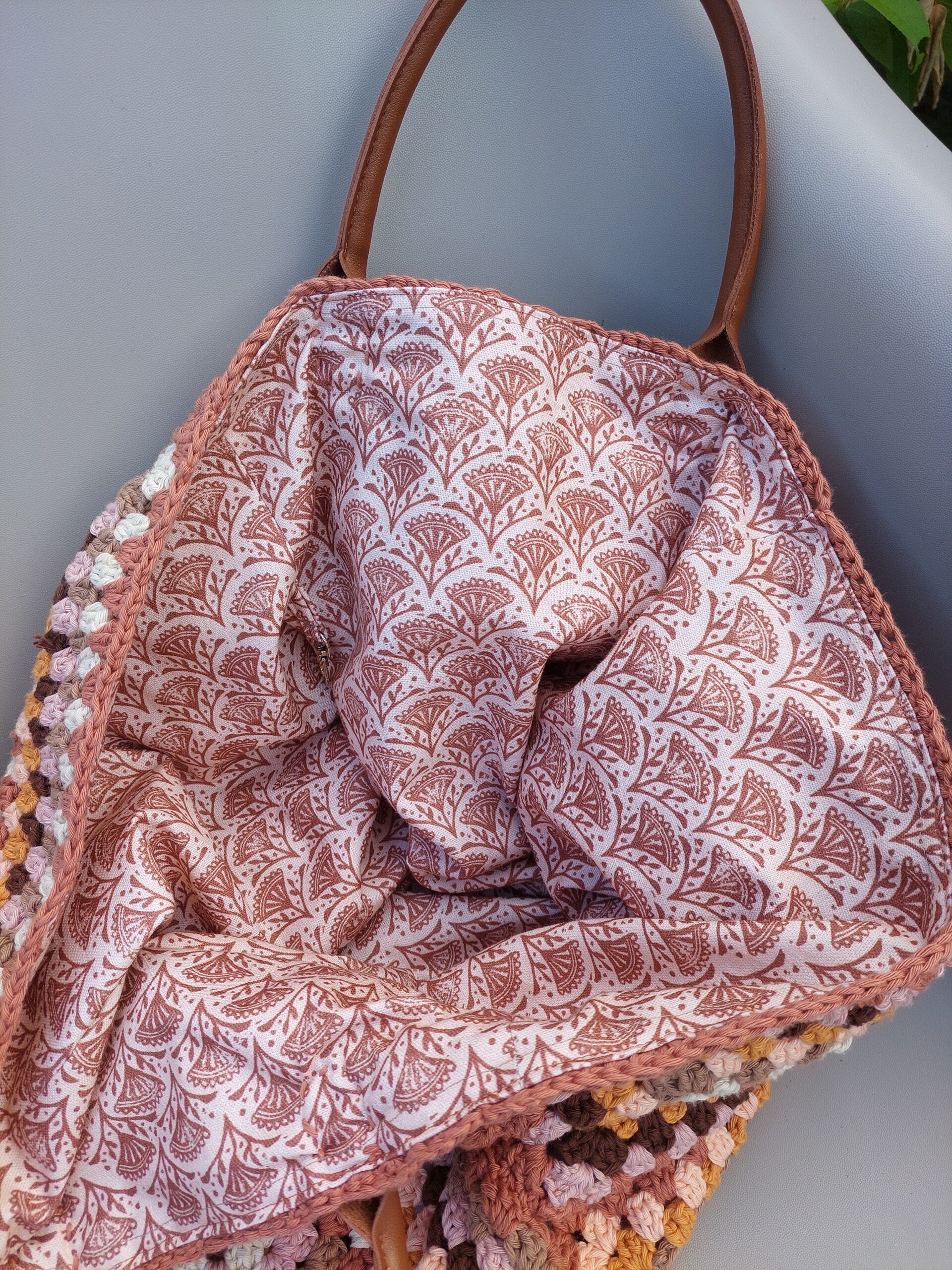Granny square shopper Orange neutrals